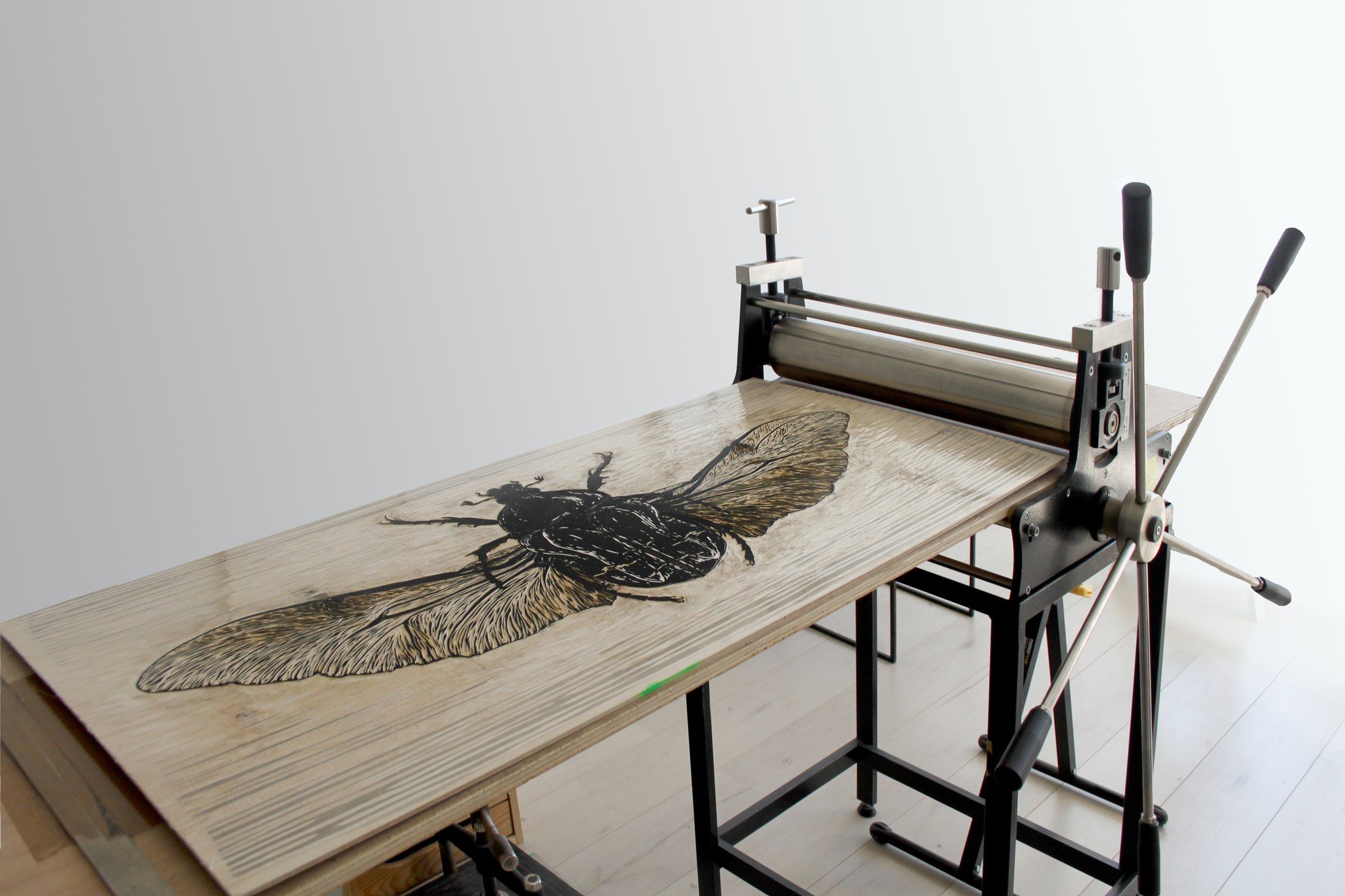 Au travers des environnements immersifs qu’elle crée, elle cherche à plonger le spectateur dans un état où ses ressentis sont exacerbés, et partager la performance vécue lors de la réalisation de grands panneaux gravés, comme de métal martelé.
