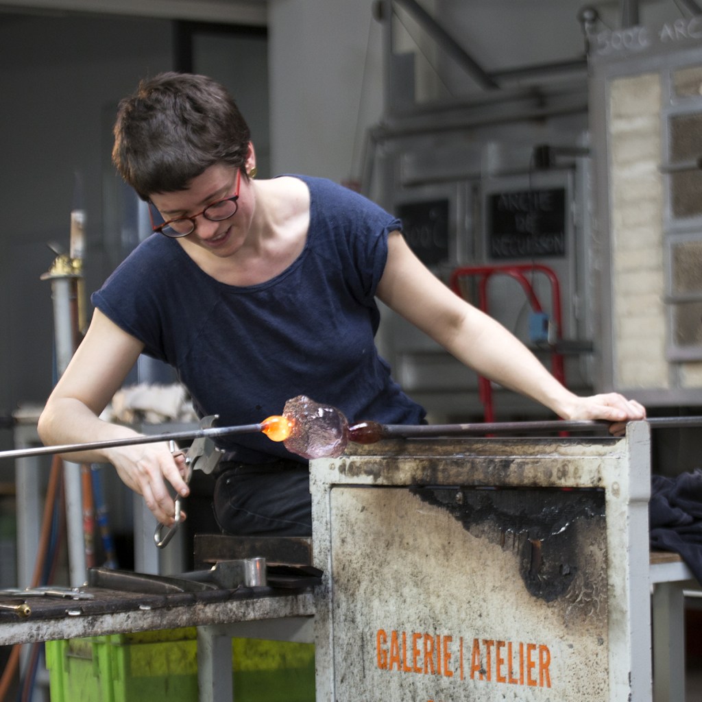 Ma pratique de souffleuse de verre réside dans un dialogue intime et amusant avec le verre, une matière sauvage et têtue qui nous échappe dès lors qu’on essaye de trop l’apprivoiser.